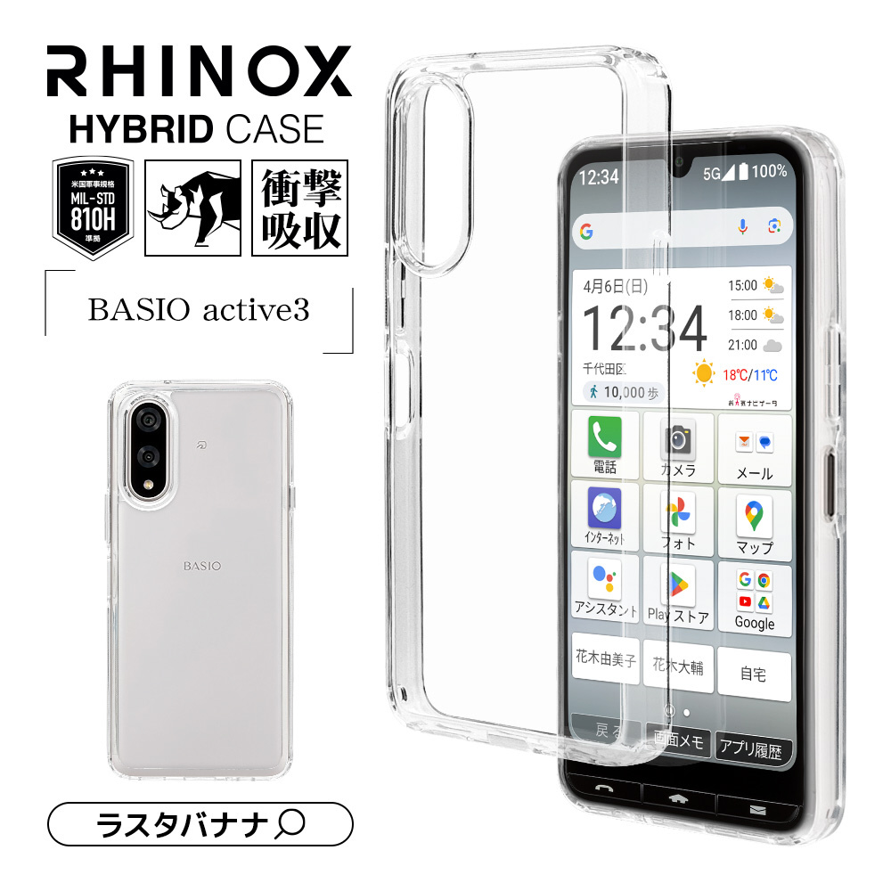 | 商品名 | BASIO active3 RHINOX ハイブリッドケース TPU×アクリル 5H 衝撃吸収 MIL規格準拠 クリア 8785BAA3HACL |