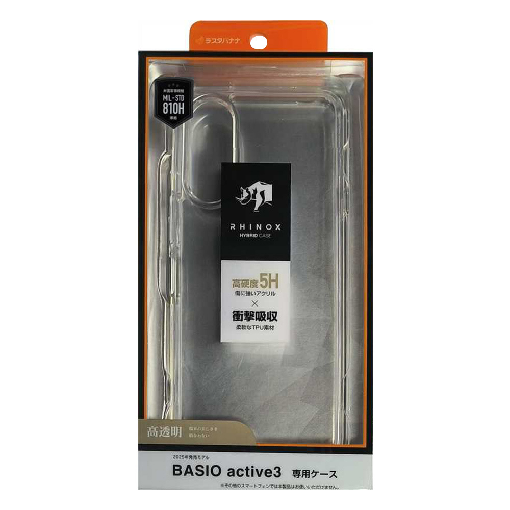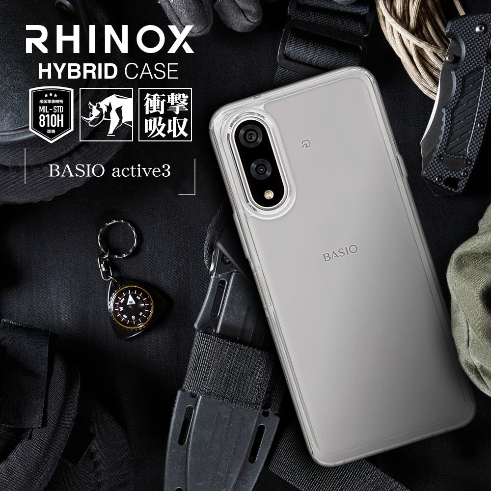 BASIO active3 RHINOX ハイブリッドケース TPU×アクリル 5H 衝撃吸収 MIL規格準拠 クリア 8785BAA3HACL
