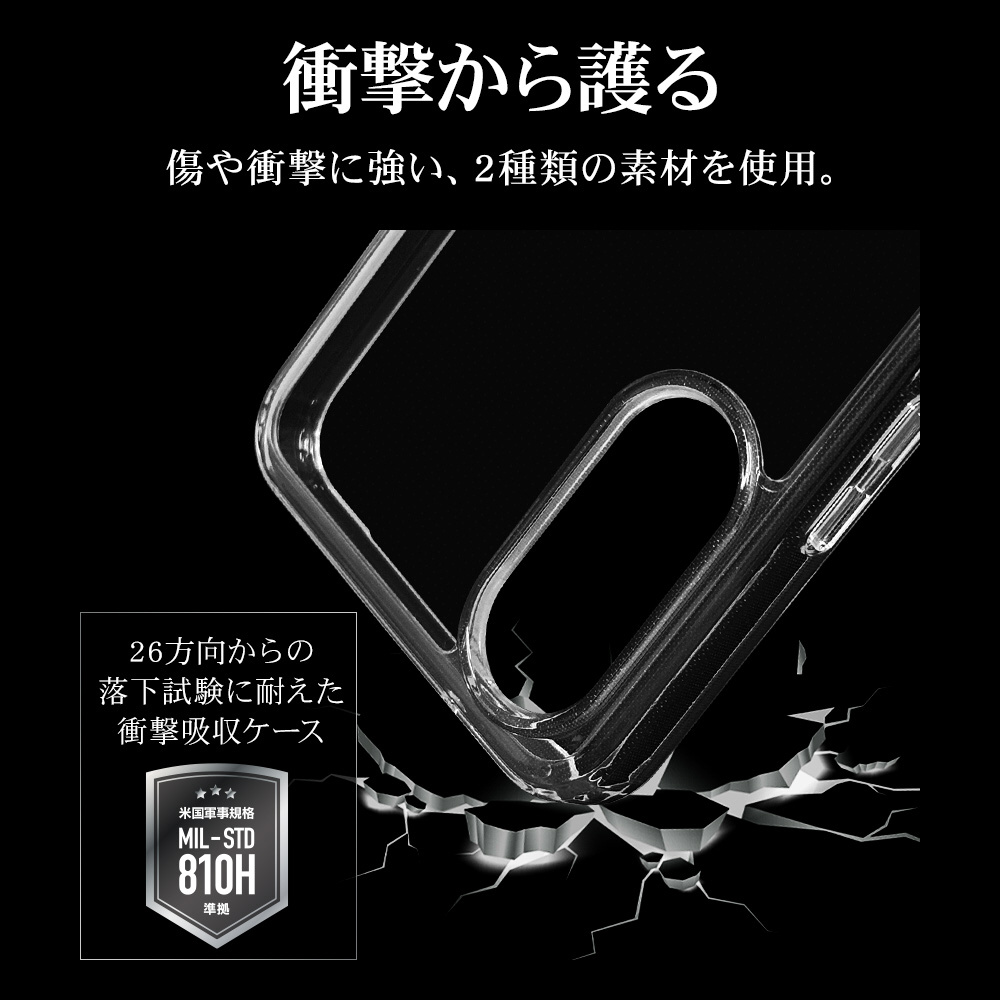 側面を柔軟なTPU、背面を傷に強いアクリル素材で保護するハイブリットケースです。