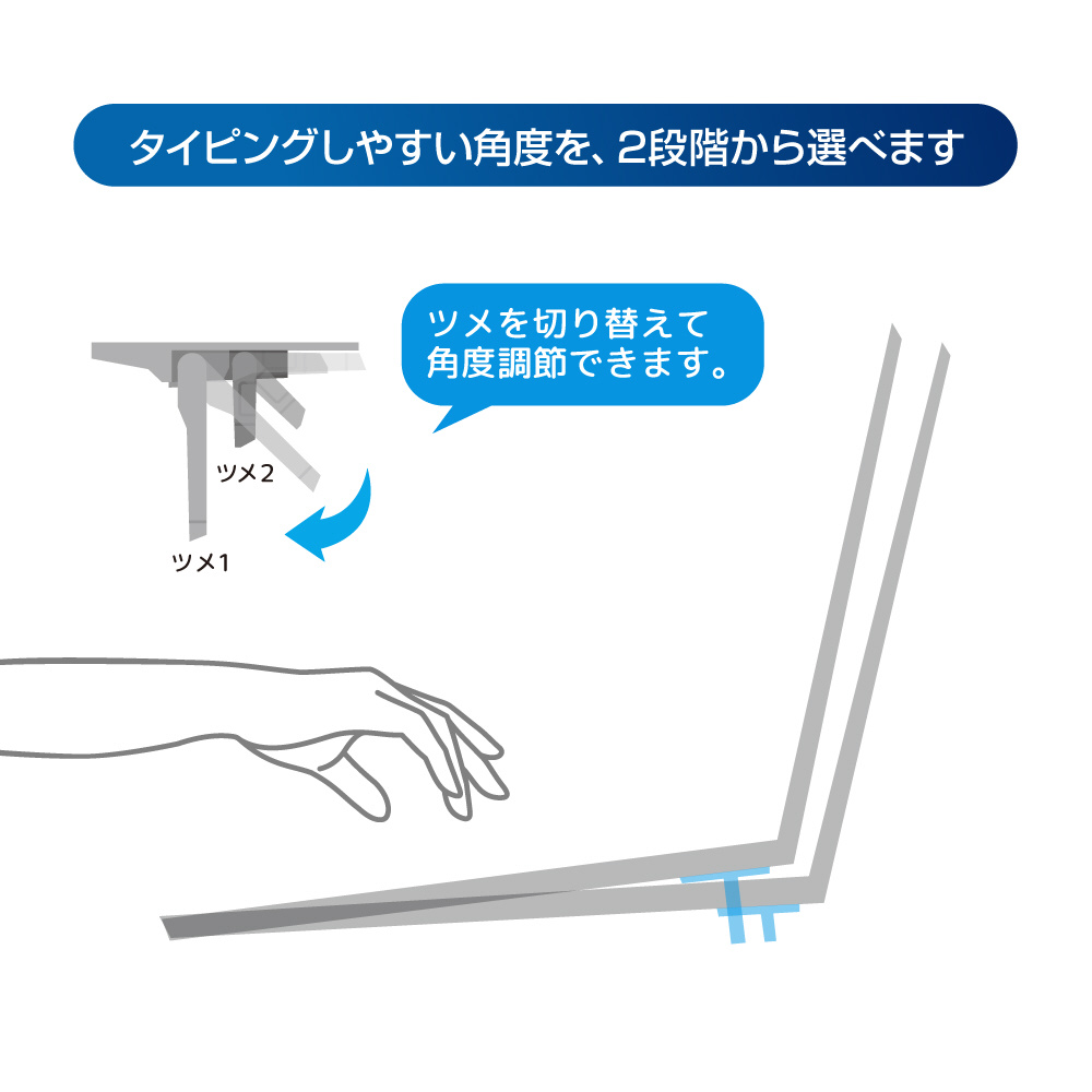 タイピングしやすい角度を2段階で調節することが可能です。