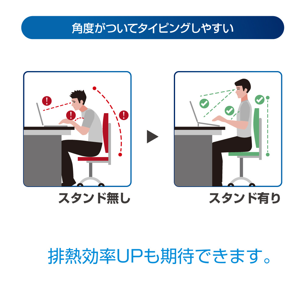 ノートPCの背面を浮かせることができるので、排熱効率UPにもなります。