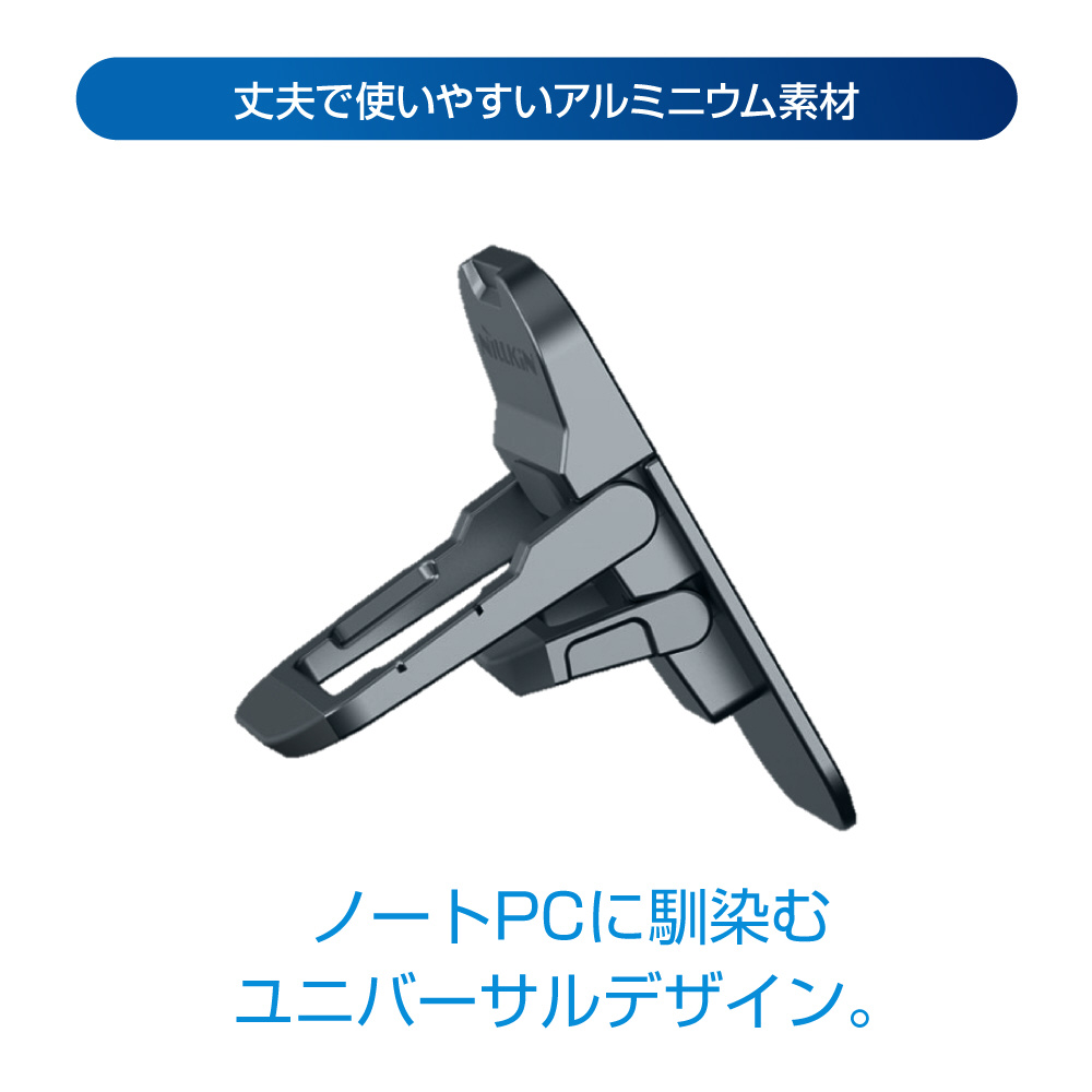 高級感のあるアルミニウムを採用し、どんなノートPCにも合わせられるユニバーサルデザイン。