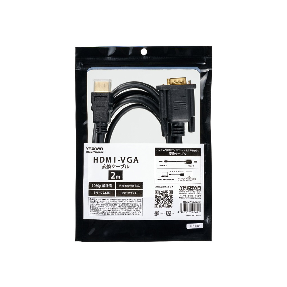 | 商品名 | HDMI-VGA変換ケーブル 2.0m HDMI Ver1.2 ブラック YHDMIVGACAB2 [HDMI⇔VGA /2m] |