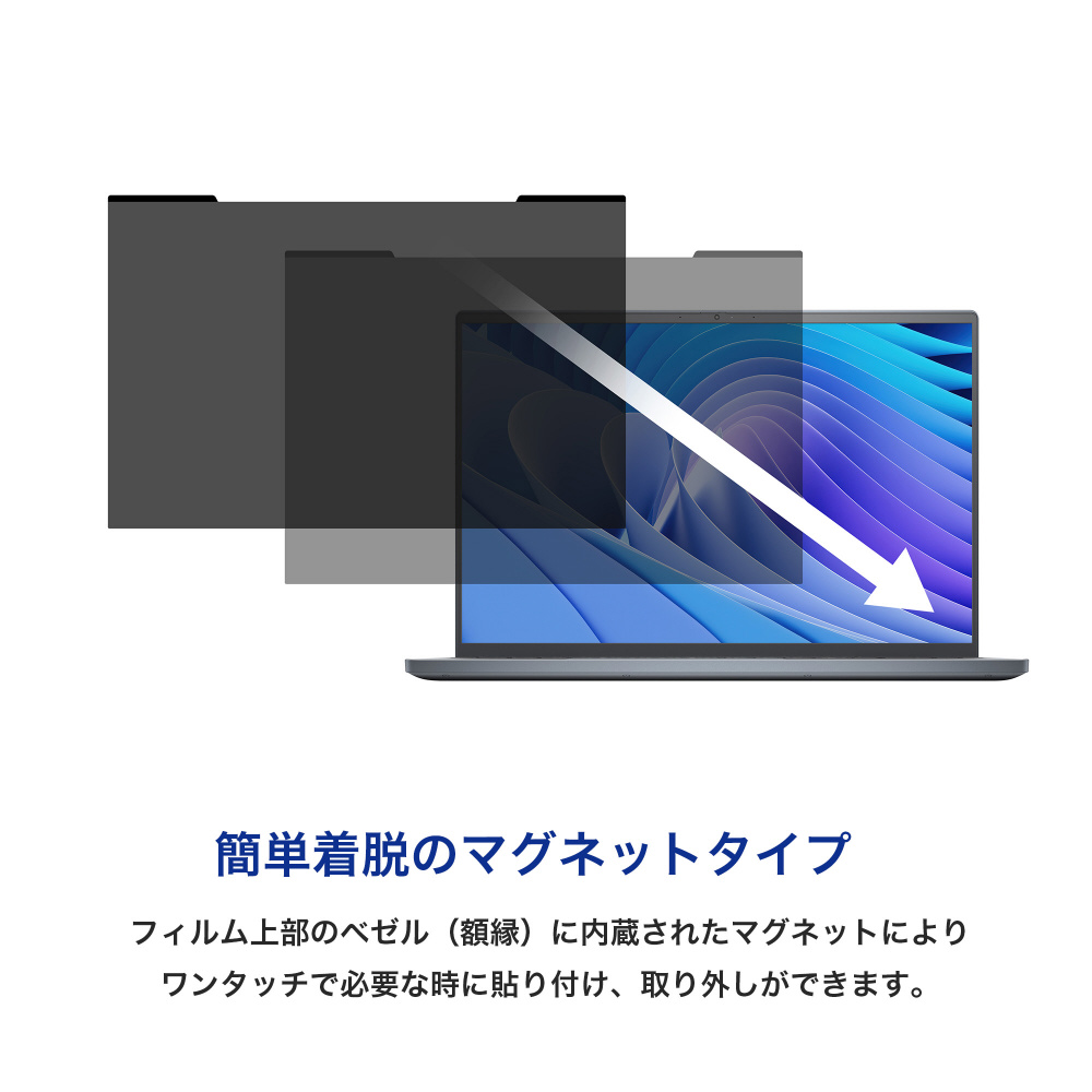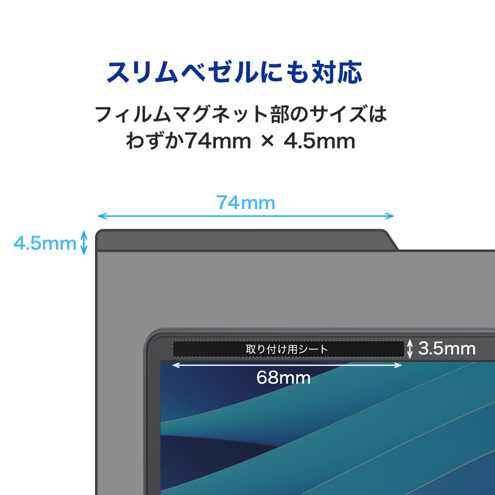 ■狭額縁のノートPCに対応。スリムベゼルタイプのマグネット式のぞき見防止フィルム