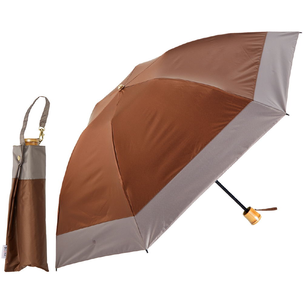 | 商品名 | 手動折りたたみ傘 3段式6本骨 逆さ傘 バイカラー ブラウン×モカ M55DP-063PO-brown-mocha [晴雨兼用傘 /55cm] |