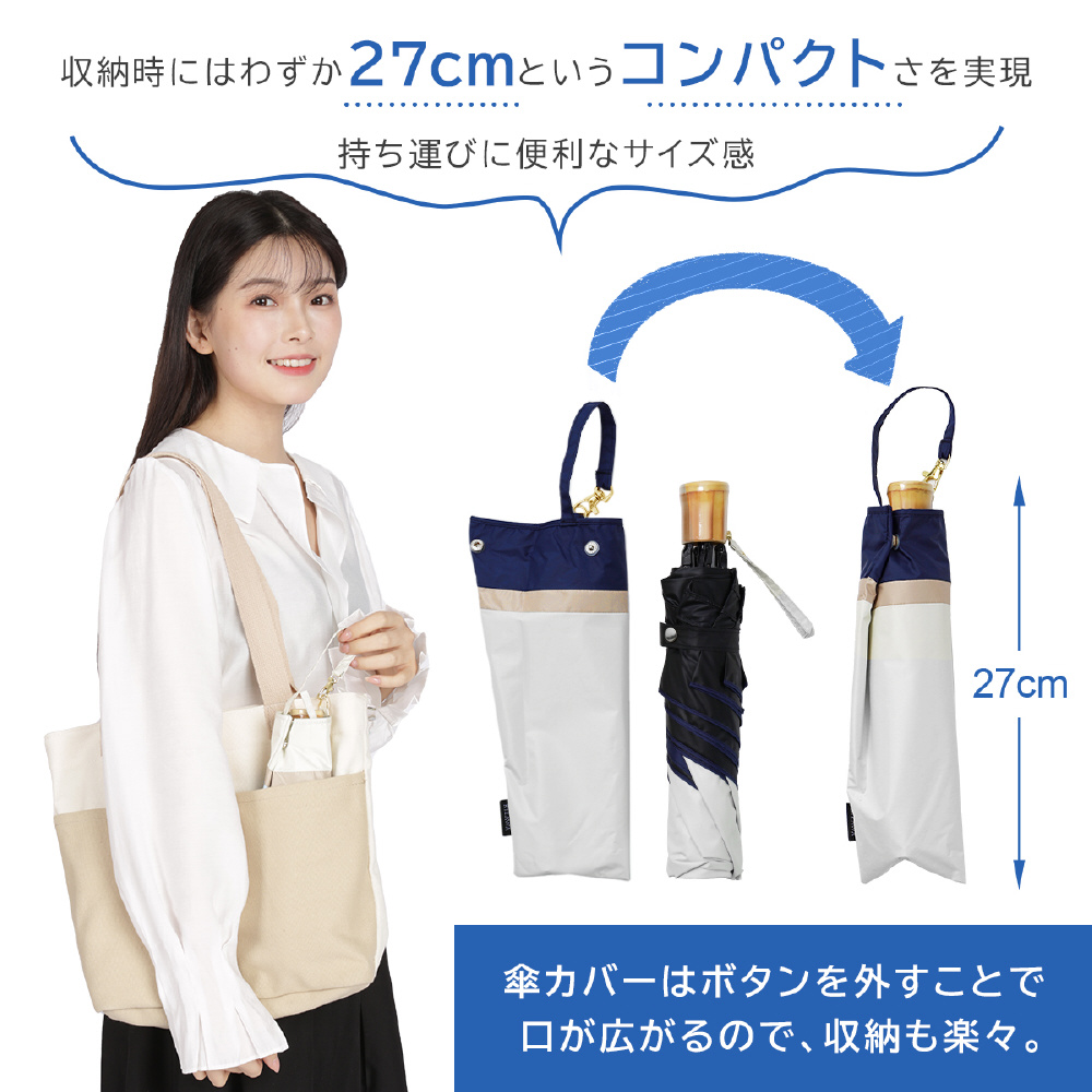 収納時の長さはわずか27cmで、カバンに入れて携帯できるスリムサイズで急な雨に降られても安心です。傘本体の重さは約210gという軽量タイプ。軽量コンパクトおりたたみ傘でカバン・ハンドバッグに入れて毎日の携帯にも負担になりません!