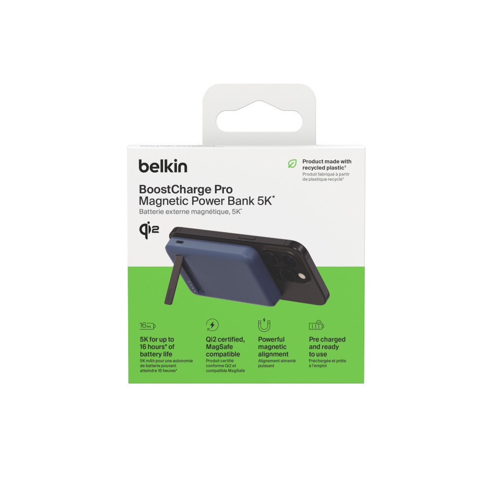 Belkin Qi2 モバイルバッテリー5000mAh 15W + スタンド ブルー