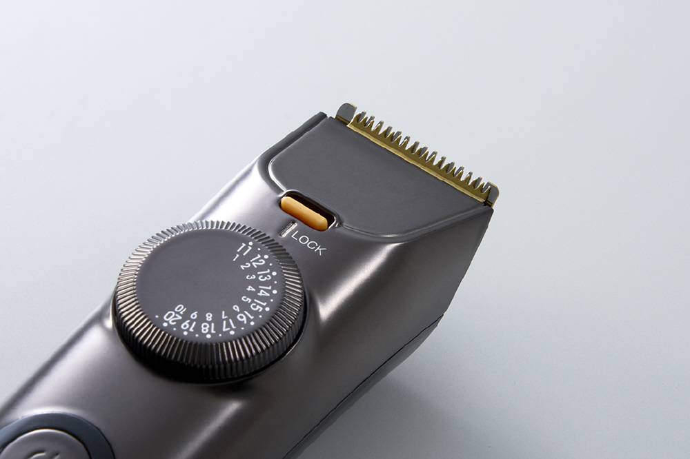 ダイヤル上部のロックスイッチは刈り高さを固定でき、カット中に誤った操作による刈り過ぎなどの失敗を防ぐことが出来ます。また、刈り高さを固定できるので、一定の長さで刈り上げる2ブロックスタイルに便利な機能です。