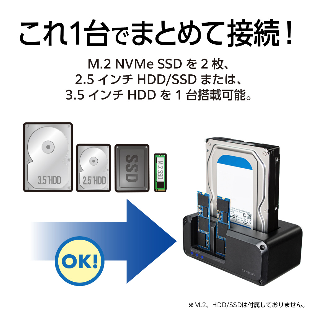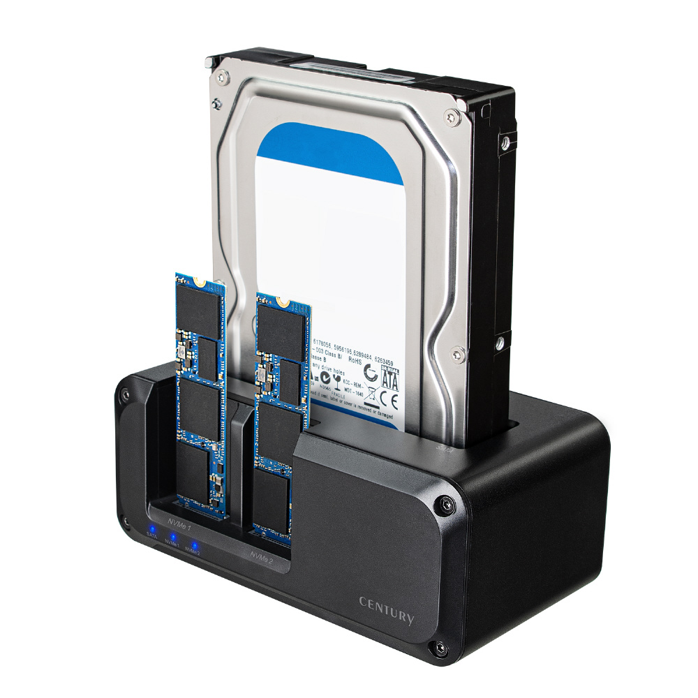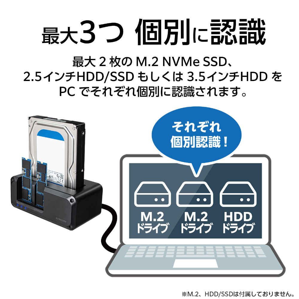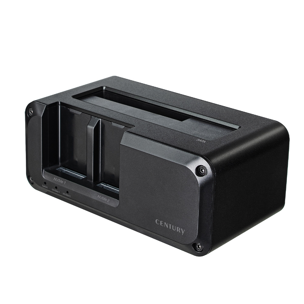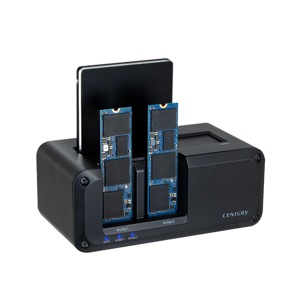 NVMeもSATAもこれ一台! USB10Gbps接続対応、最大3台のHDD/SSDが搭載可能な外付けクレードル