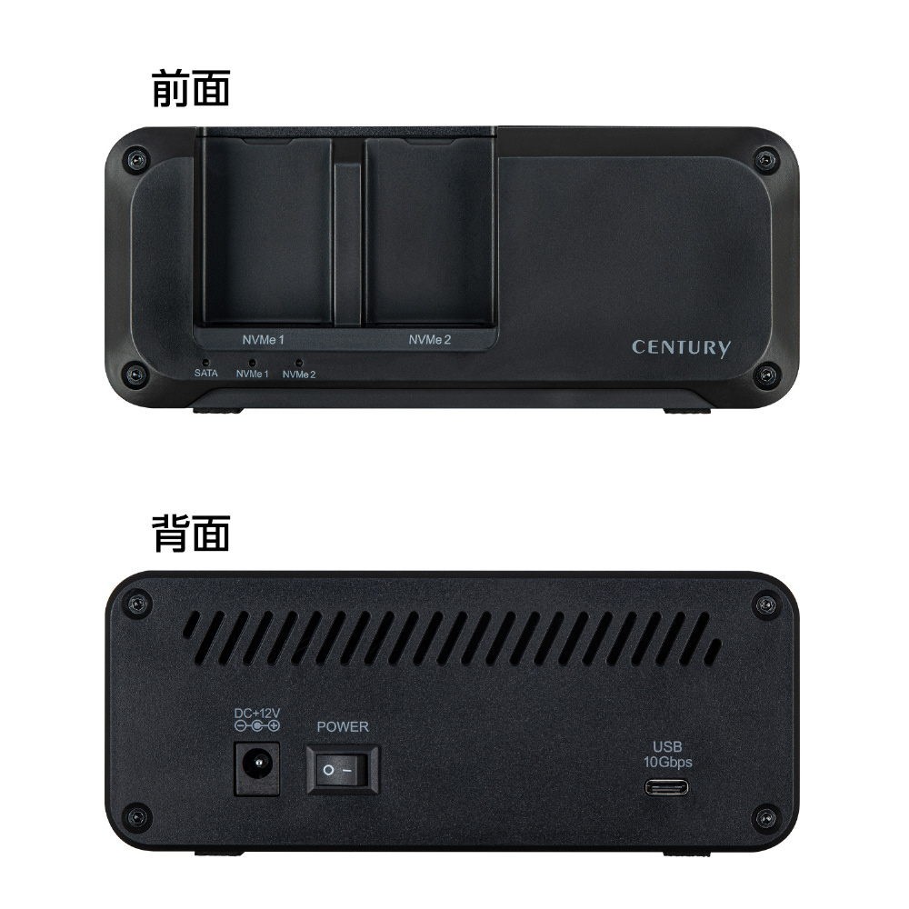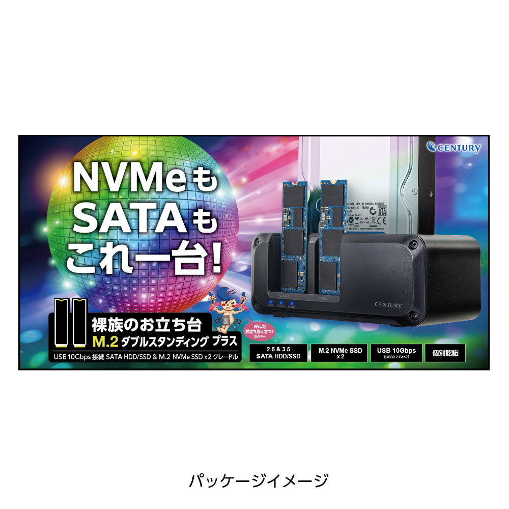 HDD/SSDスタンド USB-C接続 (M.2、3.5インチ&2.5インチ対応) 裸族のお立ち台 M.2ダブルスタンディングプラス(Mac/Windows11対応) ブラック CROSMDSP10G [SATA+NVMe /3台]