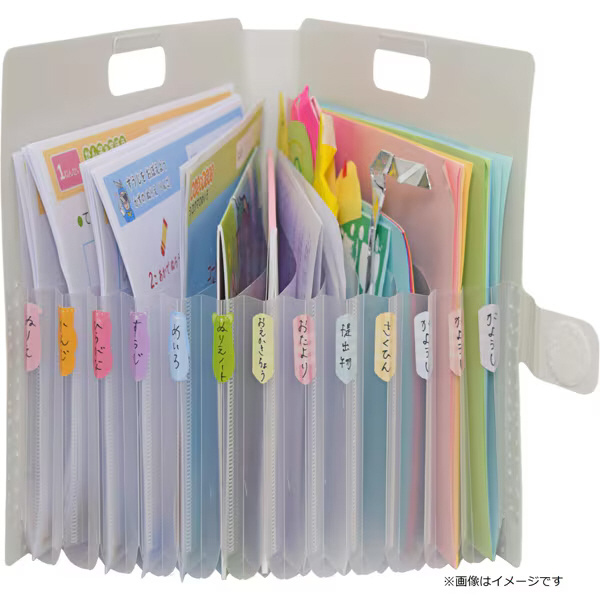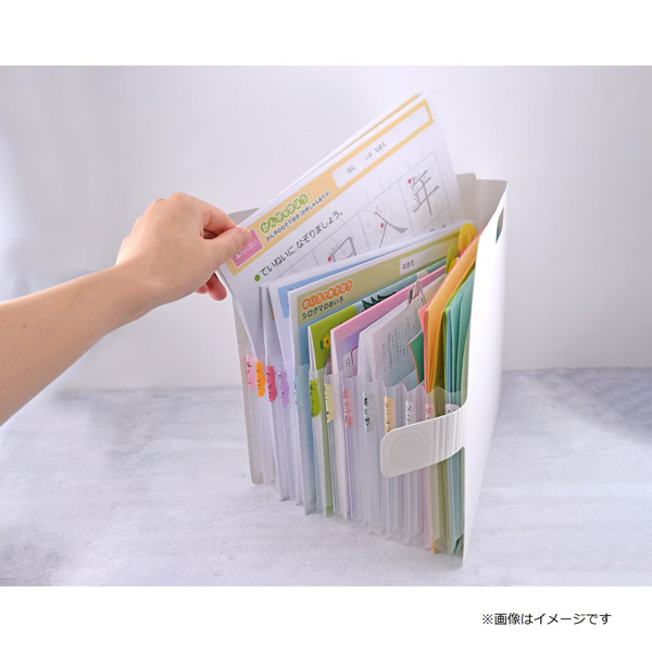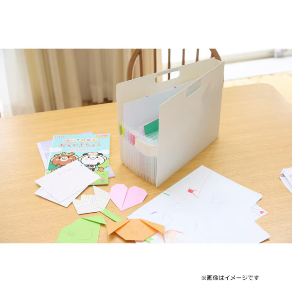 A4サイズは通常サイズのこまごまファイルの特長を備え、学校や幼保園のプリント、習い事の宿題などを収納することができます。