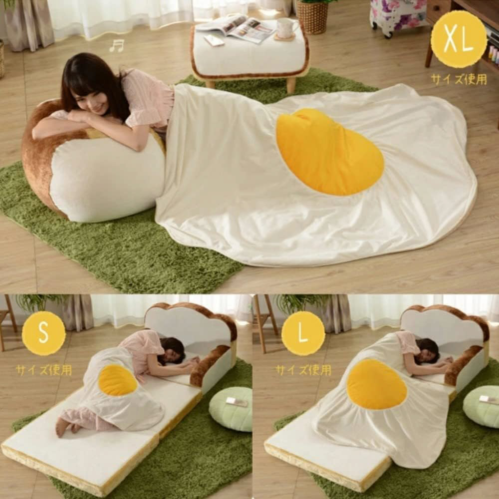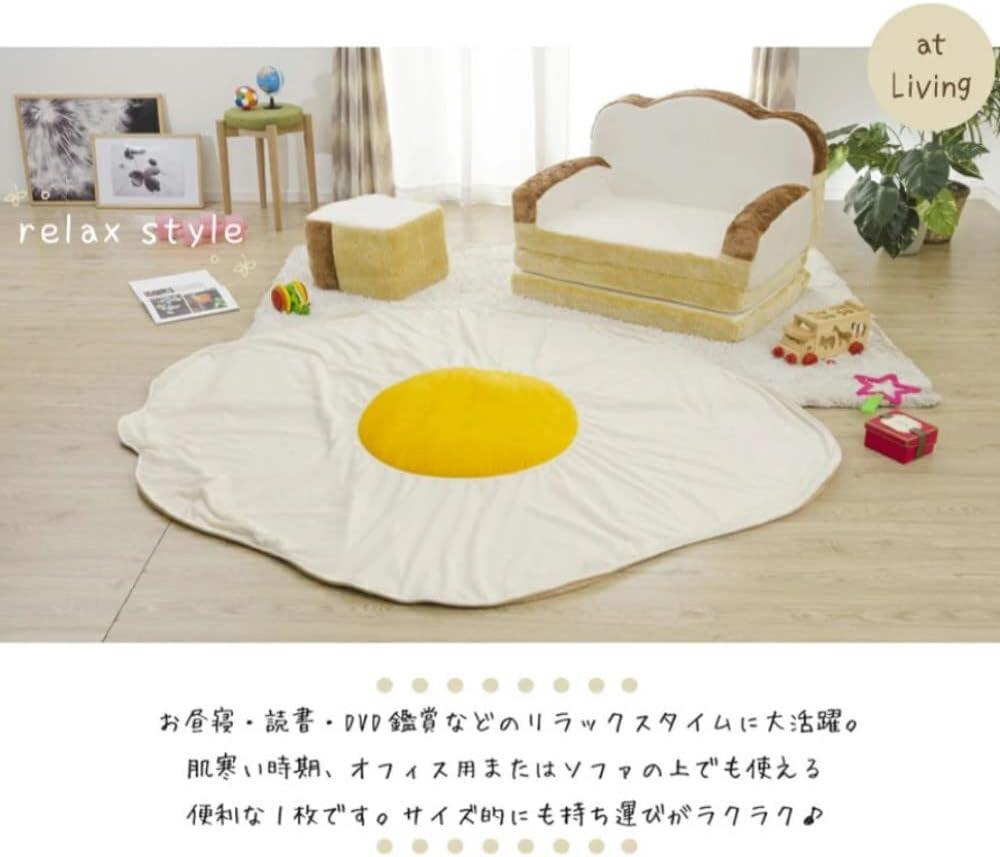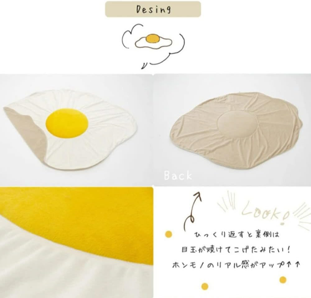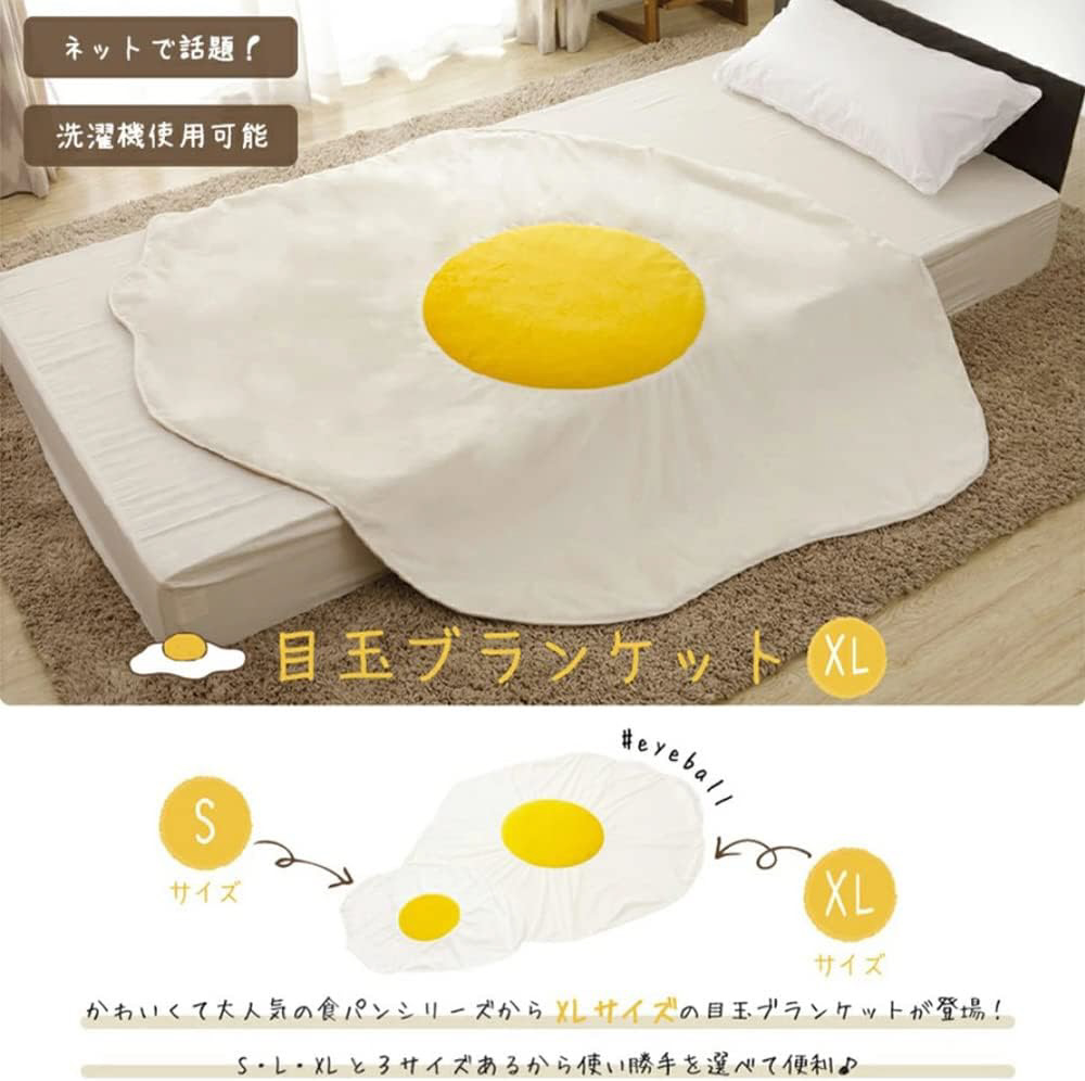 目玉焼きのかわいいブランケット。S、L、XLの3サイズからお選びください。