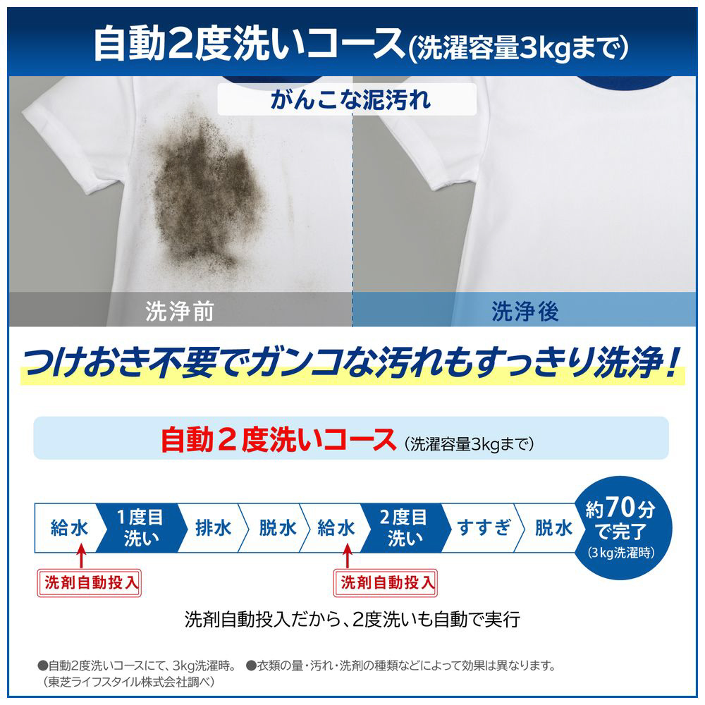 さらに、自動投入ならではの自動2度洗いコースも搭載。