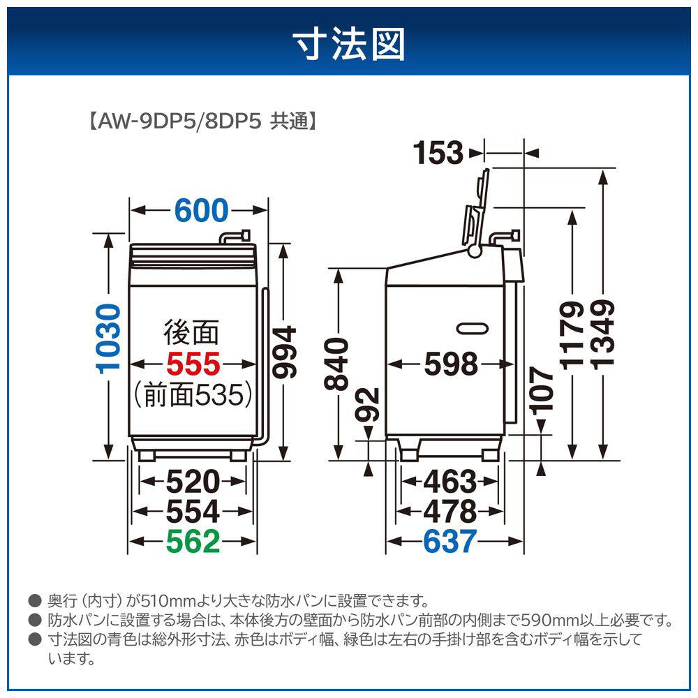 商品名 全自動洗濯機 ZABOON グランホワイト AW-9DP5(W) [洗濯9.0kg /簡易乾燥(送風機能) /上開き] 【買い替え5000pt】