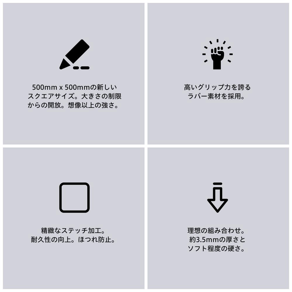 直感的な操作性を実現する独特の滑りでバランスの取れたコントロール。エイムのための広大な操作領域を実現する革新的なスクエアサイズ。どんな激しい動きにも対応する高グリップの裏面。陽炎と共に、新たな物語を築き上げてください。