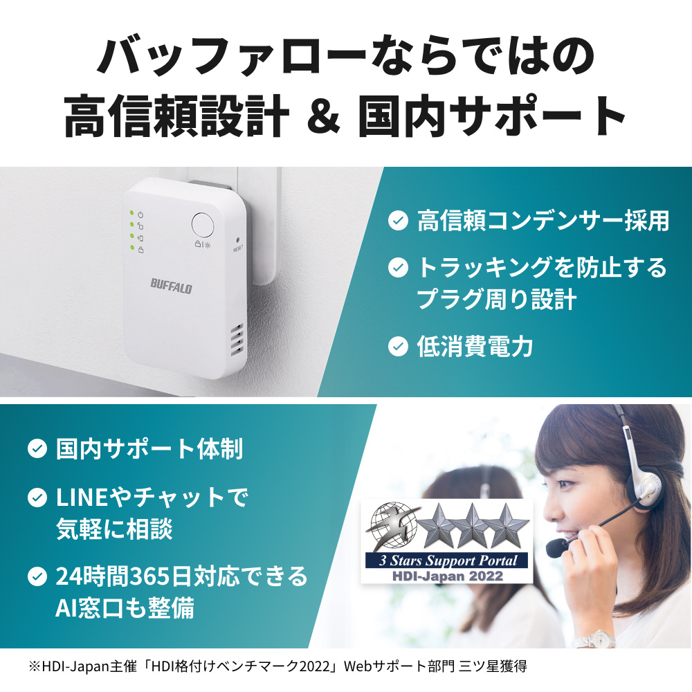 WEX-1166DHPL Wi-Fi中継機【コンセント直挿し】866+300Mbps AirStation [Wi-Fi 5(ac)]