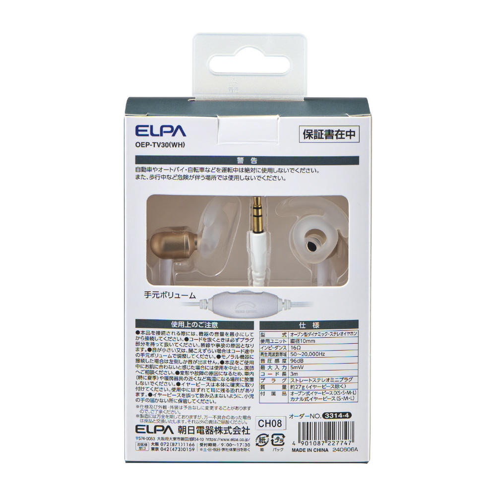 テレビイヤホン インナーイヤー型 ホワイト OEP-TV30(WH) [φ3.5mm ミニプラグ]