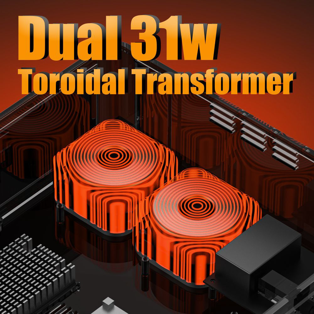 デュアル31wトロイダルトランス搭載 豊富な電力で音質と安定性を維持