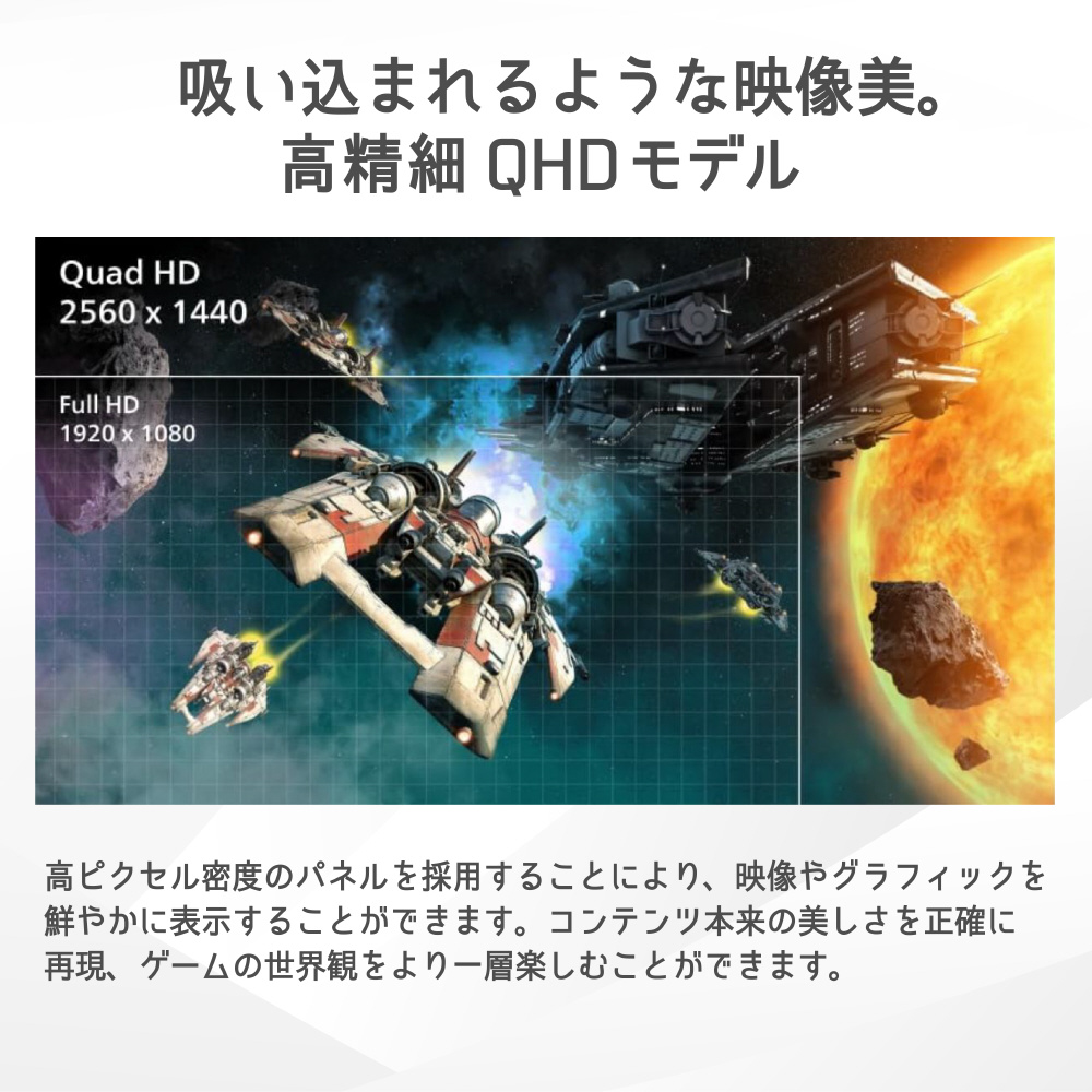 QHD高解像度×DisplayHDR400×180Hz×0.5ms