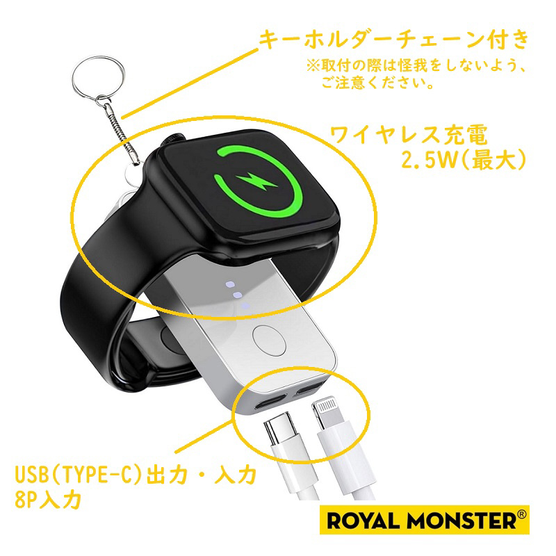 Applewatchキーホルダー・チャージャー1200mAh