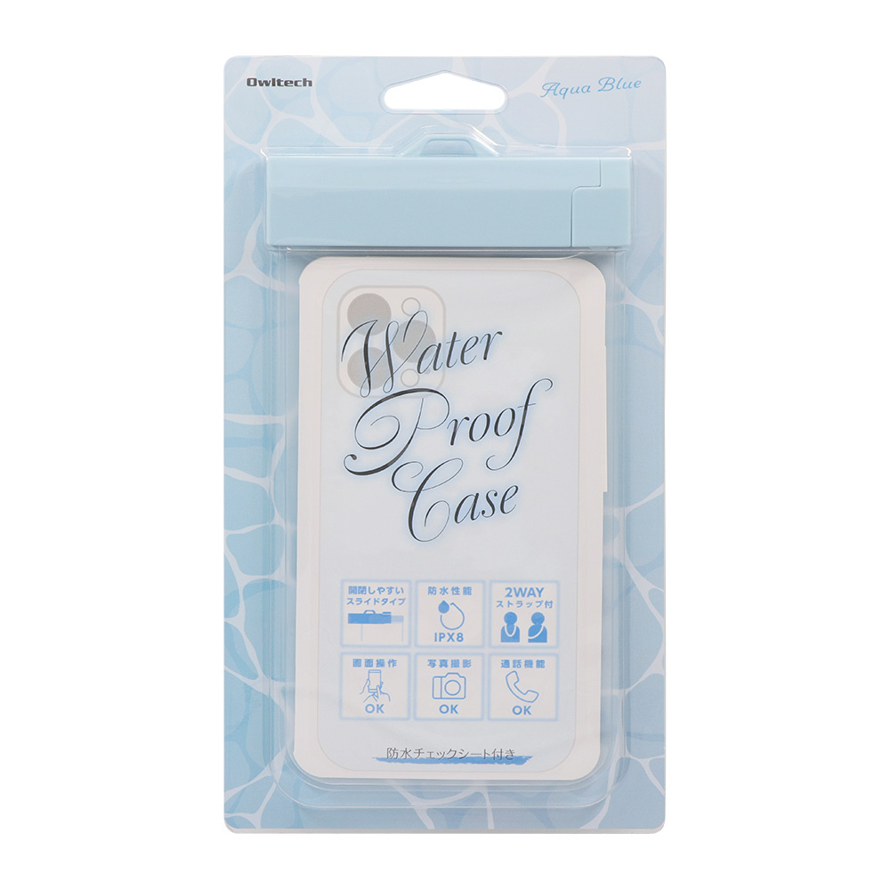 防水ケース シンプルデザインに柔らかなニュアンスカラー IPX8取得 アクアブルー OWL-WPCSP24-BL