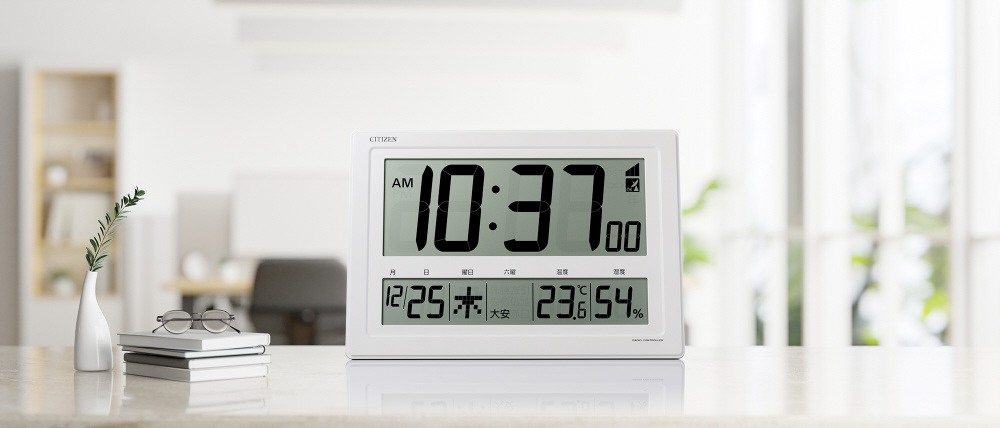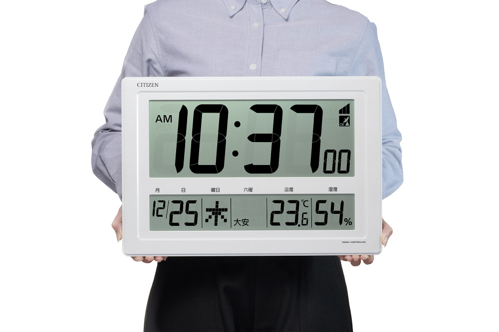 遠くからでも見やすさ抜群のサイズ感と、視認性の高い9セグを採用した大画面電波デジタル時計です。時刻の他にも、カレンダー・六曜表示・温湿度表示など使いやすい機能が揃っています。