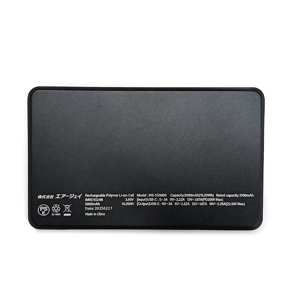 準固体モバイルバッテリー5000mAh ブラック MBSS5000BK