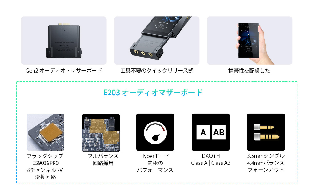 DAPのオーディオシステムを完全にモジュール化し、DACとアナログ回路の両方を完全に交換。
