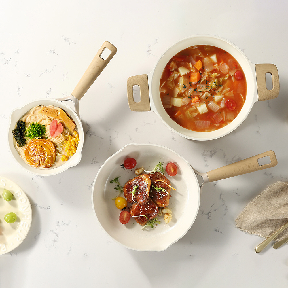 CAROTE(カローテ) 深型フライパン 26cm COSY-ICE セラミック ミルクティー NM-5083