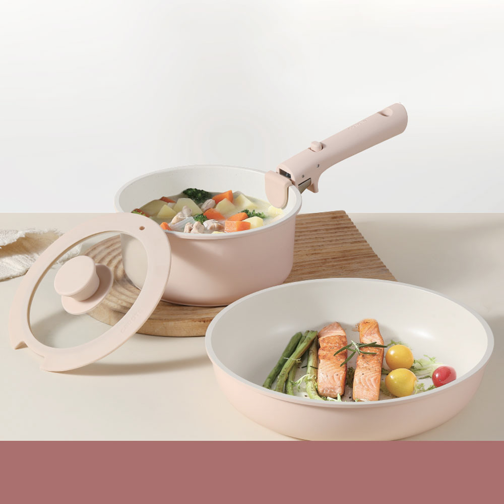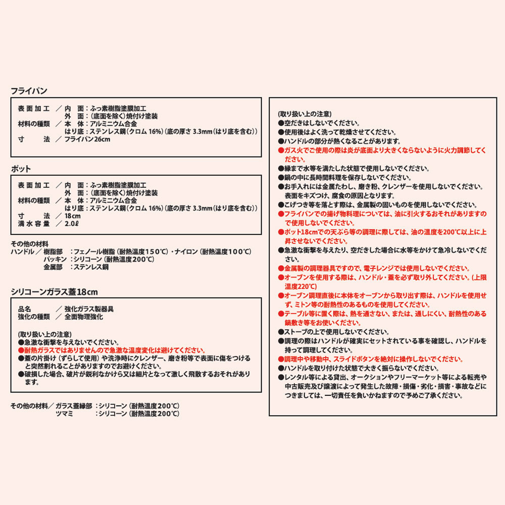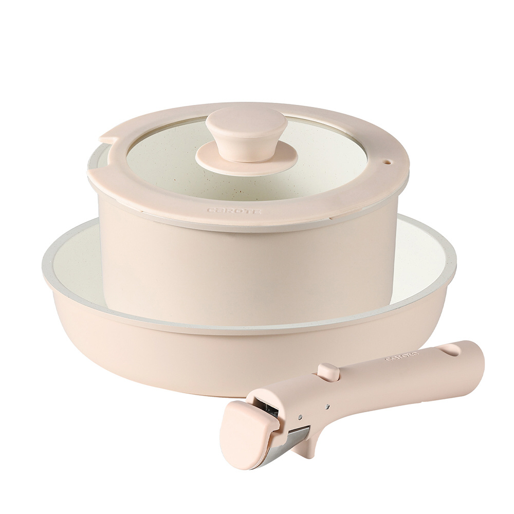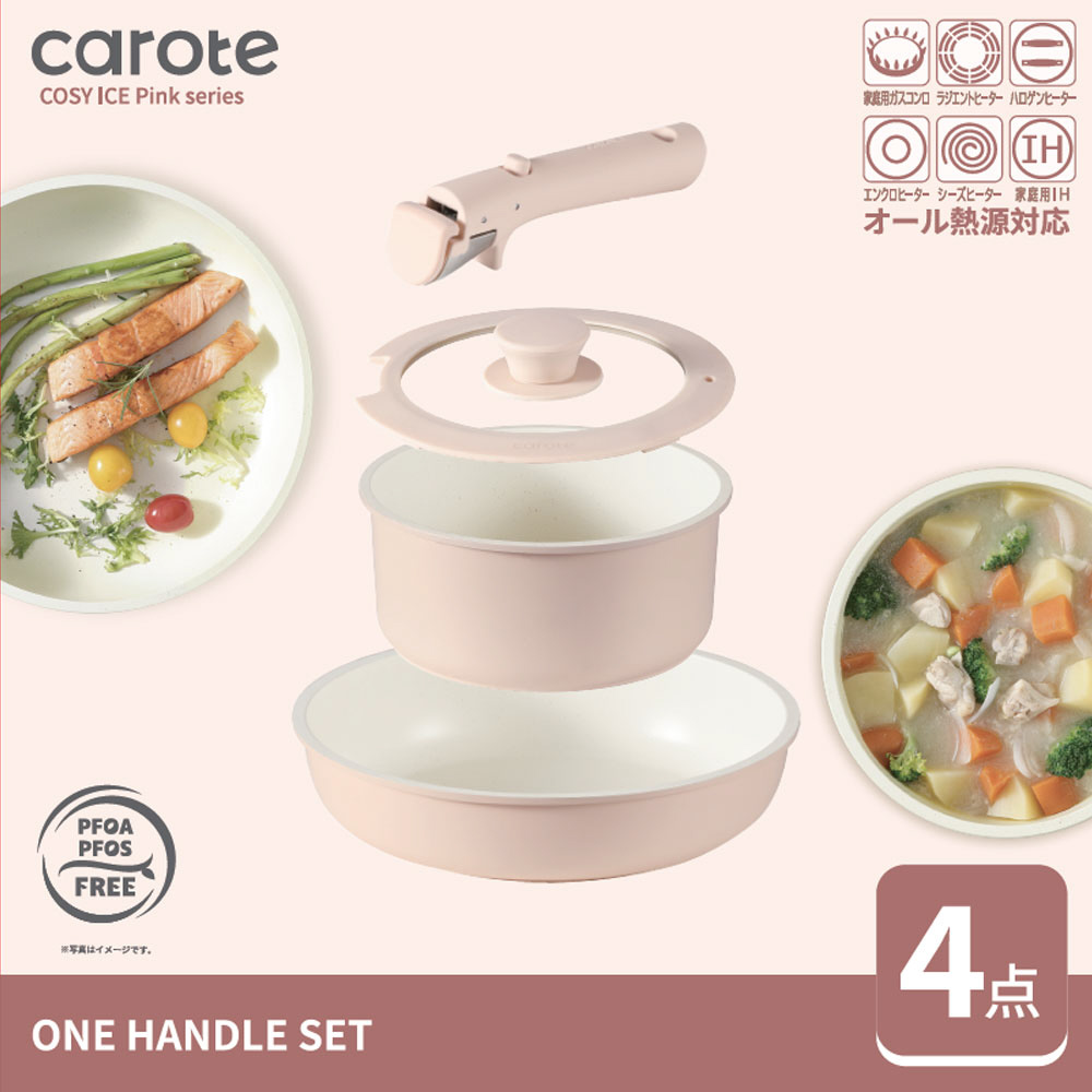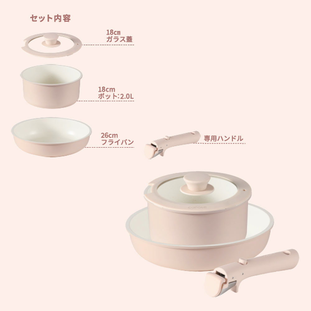 CAROTE(カローテ) フライパン ポット ガラス蓋 ハンドル 4点セット ピンク NM-5140