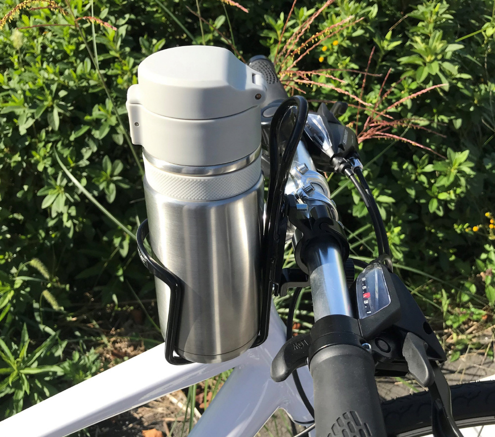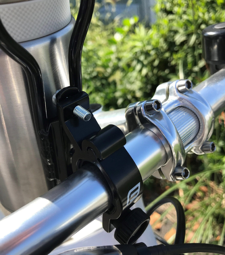 市販のボトルケージをハンドルに取付け可能にするブラケットです。