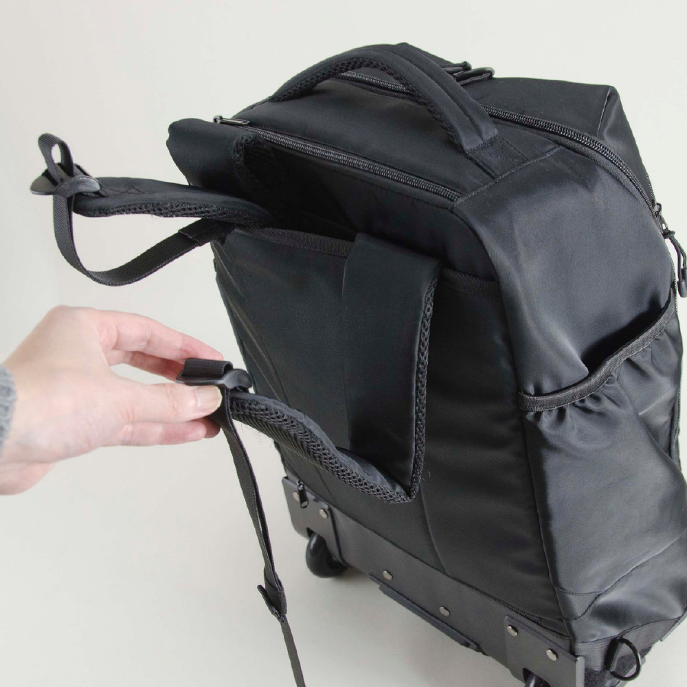 ・2WAY仕様:キャスター付きで転がして移動、背負っての移動も可能