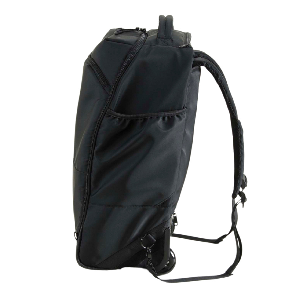 リュックとしてもキャリーとしても使える2WAY設計。タイヤ付きでスムーズに転がせるのはもちろん、背負う際には汚れを防ぐ収納式タイヤカバーを完備。デザイン性と実用性を兼ね備え、シームレスな移動をサポートします。