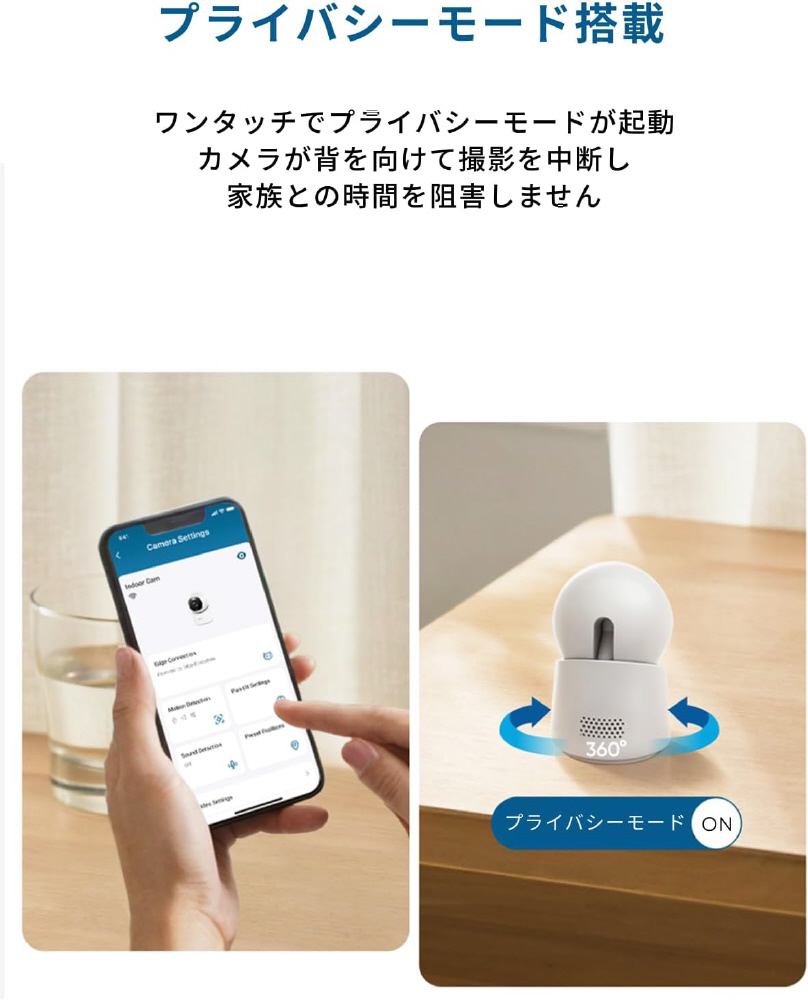 4K高画質・360°監視・AI搭載防犯屋内カメラ