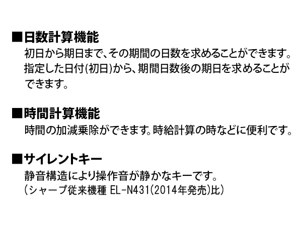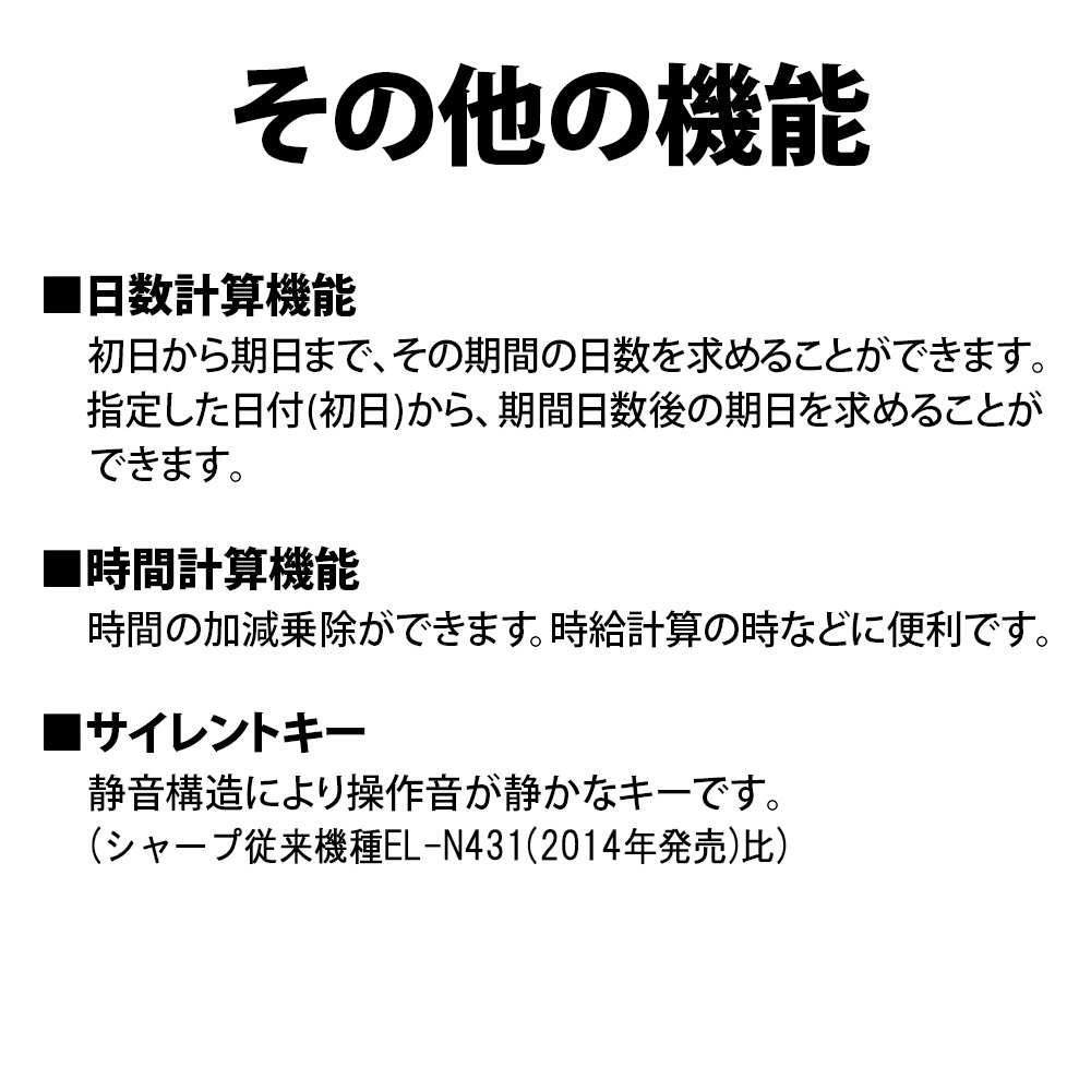 | 仕様3 | 税計算、日数計算、時間計算、 |