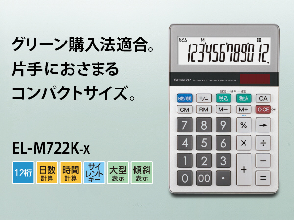 | 商品名 | 実務電卓 ミニナイスサイズ EL-M722KX |