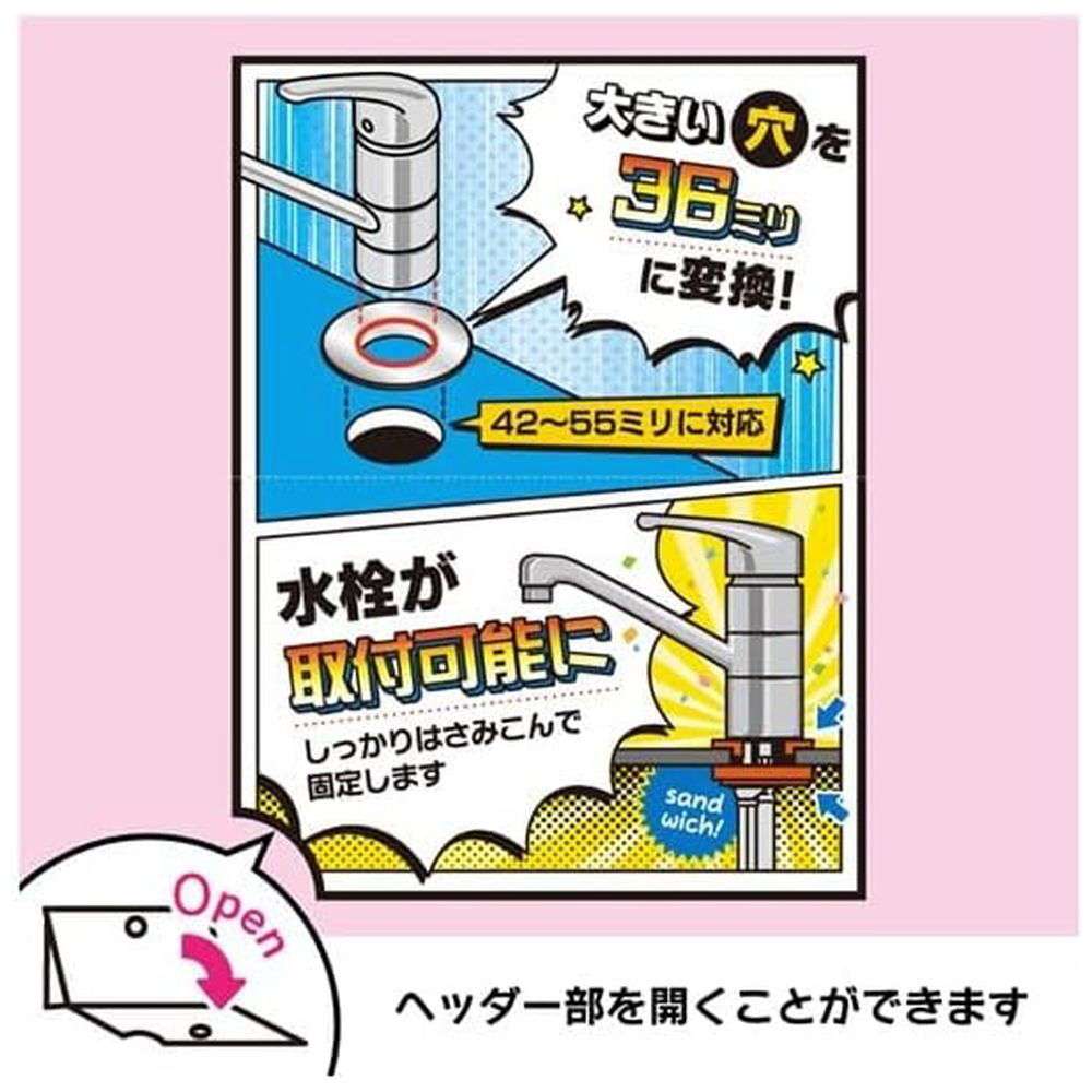 はさみ込み厚さが5ミリ未満のシンクにシングルレバー混合栓を取付ける場合の補強板付き。