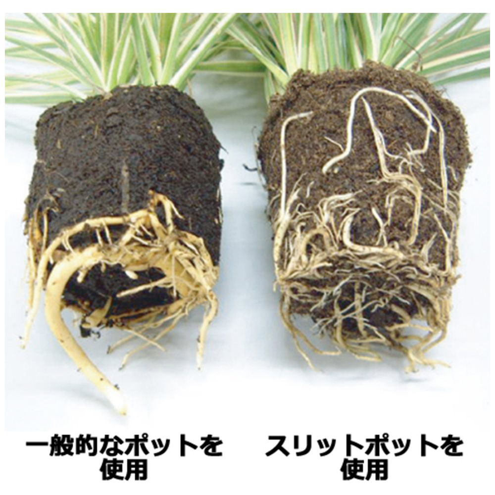 【特徴】・スリットポットは地植えをした時の根はりと同じ状況を実現するために設計された理想的な鉢です。