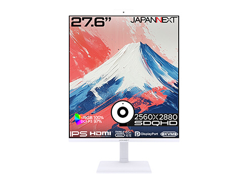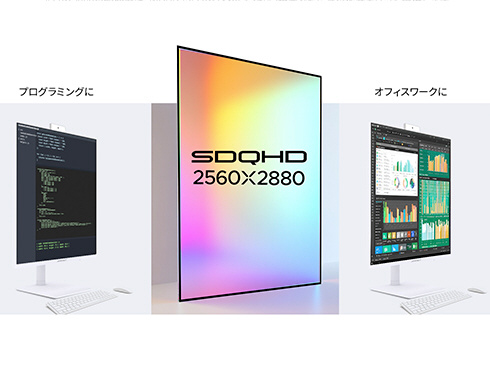 27.6インチのIPSパネルを搭載し、SDQHD(2560x2880)解像度に対応した液晶モニターです。フルHD(1920×1080)解像度よりも約2.67倍の表示領域を誇るSDQHD(2560×2880)解像度は、縦に長く広がるスクリーンを活かし、プログラミングやドキュメント作業などで圧倒的な作業効率を実現します。