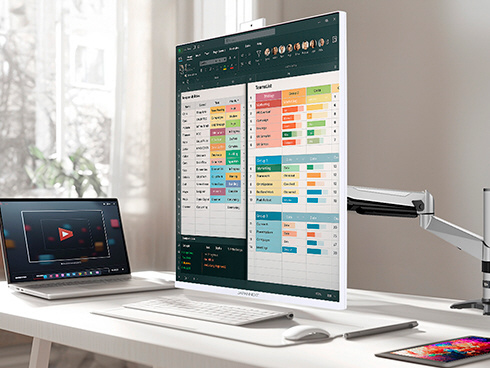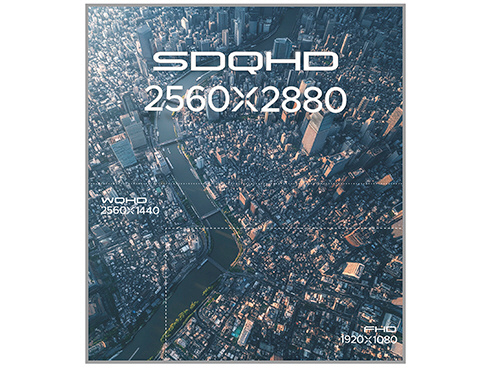 ■WQHD(2560x1440)解像度を縦に2枚並べたSDQHD(2560x2880)解像度は、圧倒的な広さの作業エリアを提供します。また、16:18のアスペクト比に対応した縦長ディスプレイが、作業空間に新たな快適さを。ExcelやWebブラウザ、PDF資料などを一画面でより多く表示できるため、スクロールの手間を軽減し、作業効率を大きく向上させます。
