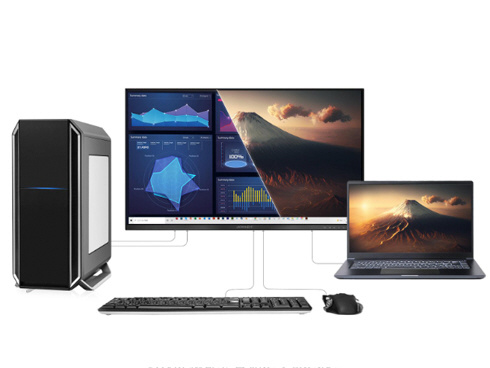 ■KVM機能を搭載し、モニターに接続したキーボード、マウスをデスクトップPCやUSB Type-C接続のノートPCで入力を切り替えた際にもそのまま使用可能です。