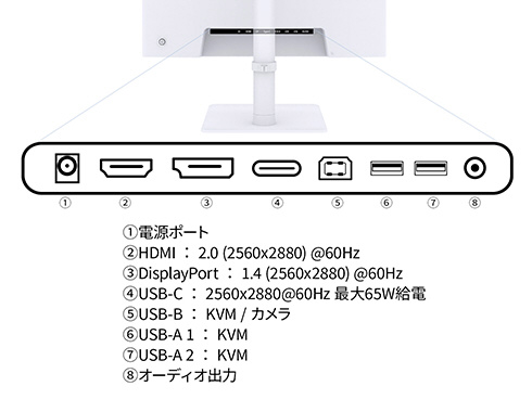 「27.6インチ IPSパネル搭載 SDQHD(2560x2880)解像度 縦長液晶モニター HDMI DP USB Type-C(最大65W給電) HDR sRGB:100% DCI-P3:97% Webカメラ/マイク内蔵 アスペクト比 16:18 PBP/PIP KVM 高さ調整 ピボット対応【2年保証】」