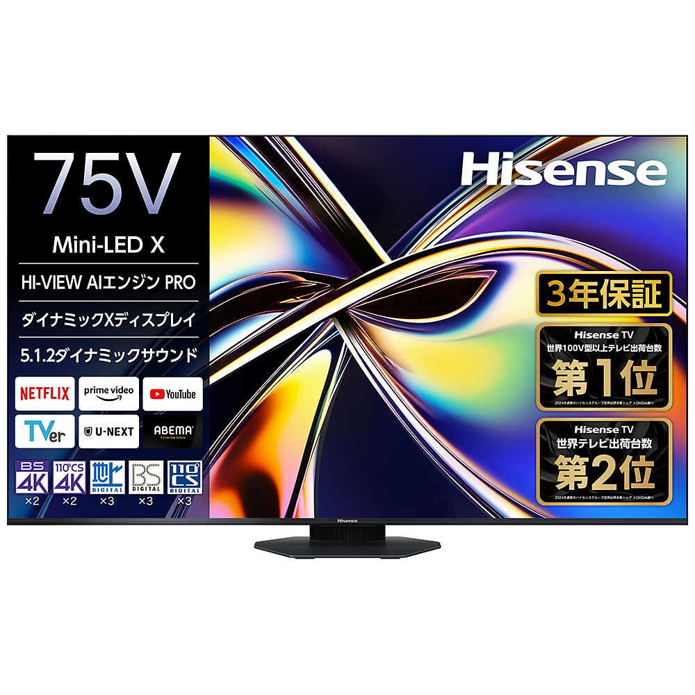 | 商品名 | 液晶テレビ 75U9R [75V型 /Bluetooth対応 /4K対応 /BS・CS 4Kチューナー内蔵 /YouTube対応] |