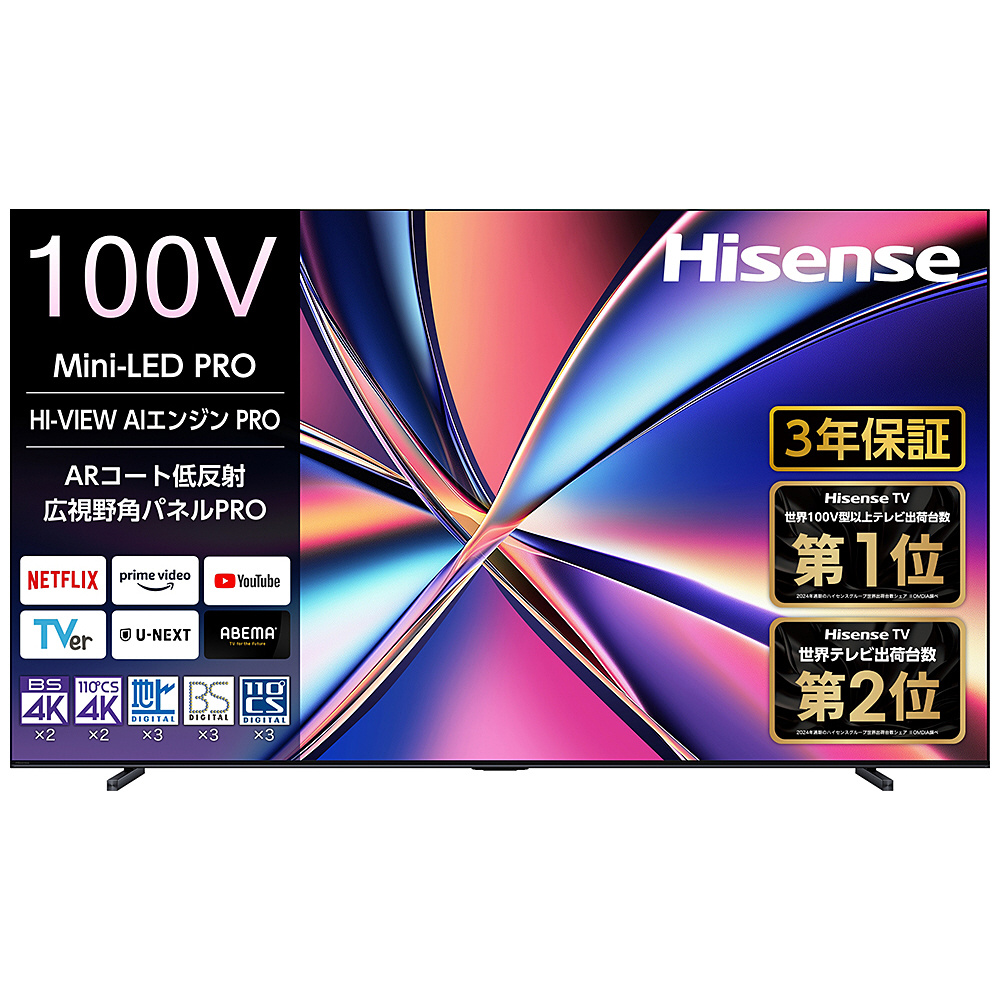 液晶テレビ 100U8R [100V型 /Bluetooth対応 /4K対応 /BS・CS 4Kチューナー内蔵 /YouTube対応] 【要事前見積もり】【買い替え30000pt】