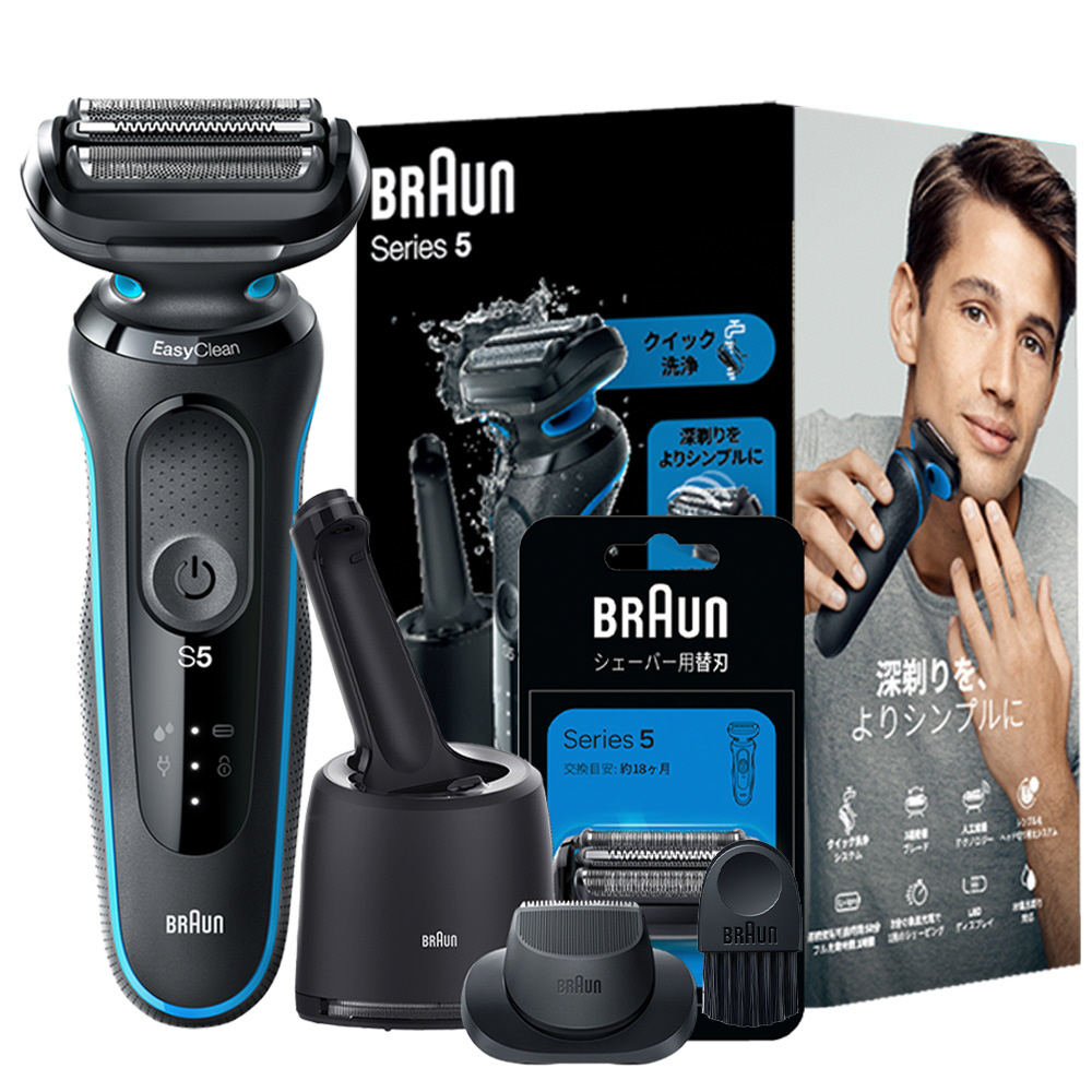 電気シェーバー シリーズ5 洗浄機付き+替刃セットモデル【キワゾリトリマー/防水設計/充電式・コードレス/ディープキャッチ網刃】 51-B7200CC-BSP [3枚刃 /AC100V-240V]
