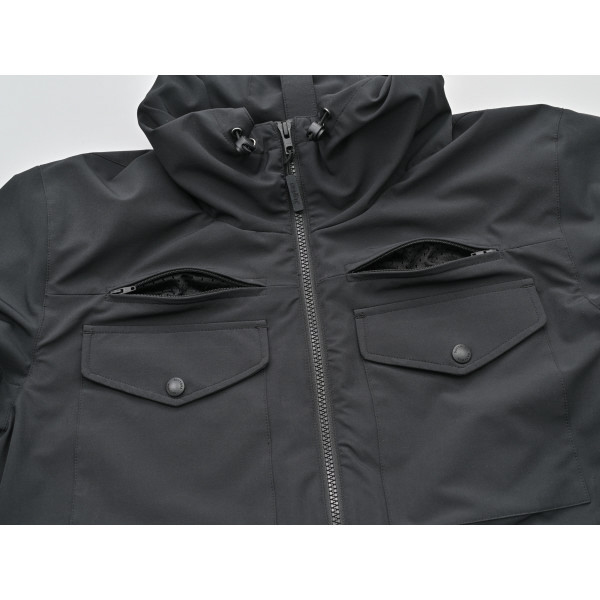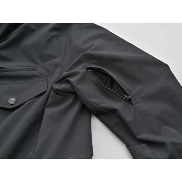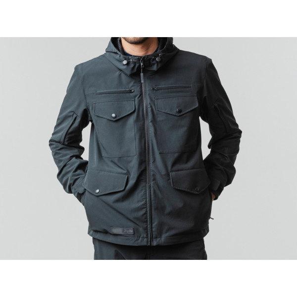 表面に汚れや水滴が付きにくいはっ水加工を施した素材を使用し、エアベンチで温度調整が可能なミリタリー風パーカー。アクティブなイメージはアドベンチャーモデルに最適。