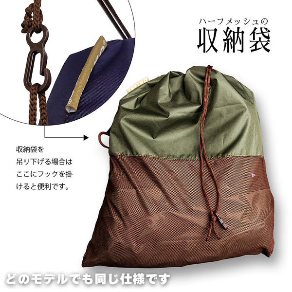 水抜けの良いハーフメッシュの収納袋もポイントです。