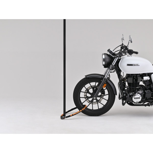 ケーブルは軽量で切断に強いワイヤー+スチールリンクの二重構造。