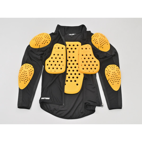 肩、肘、胸、背中にソフトタイプのCE Lv1プロテクターを標準装備。