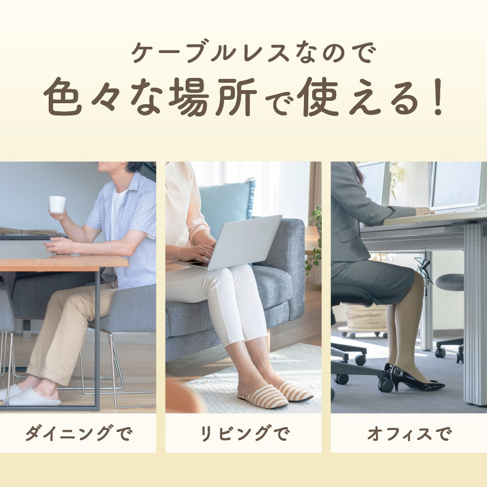 また、本製品は充電式でケーブルレスなので、自宅やオフィスなど色々な場所でお手軽に使うことができます。